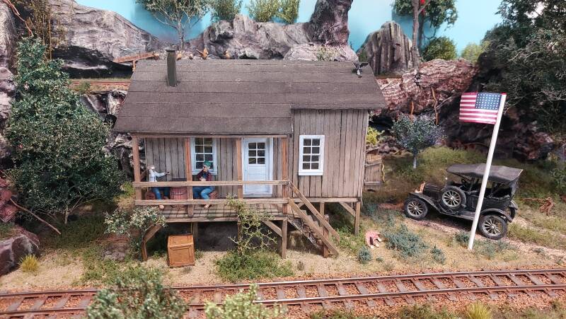 Hier vindt u een aantal afbeeldingen van mijn smalspoor project in schaal 0. Een 0n30 baan met Amerikaans uiterlijk en kleine verwijzingen naar "De hobbit" van Tolkien. Zo zijn de zelfgemaakte treinen vernoemd naar dwergen uit het boek. En wordt de ingang naar de tunnels bewaakt door standbeelden van dwergenkoningen.