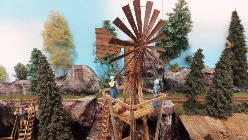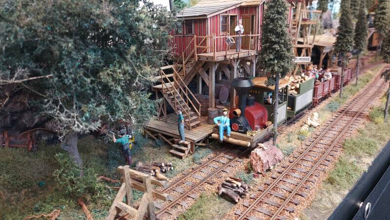 In totaal zijn er 7 camera's onder de baan gemonteerd die er voor zorgen dat de treinen hen en weer kunnen pendelen. 2 kleine speakers zorgen voor een sfeervol achtergrond geluid met vogel geluiden, wind en allerlei andere geluiden uit het bos. Er komt rook uit de schoorstenen en verlichting is ingebouwd in de gebouwen. Als het waait draait ook de windmolen nog.